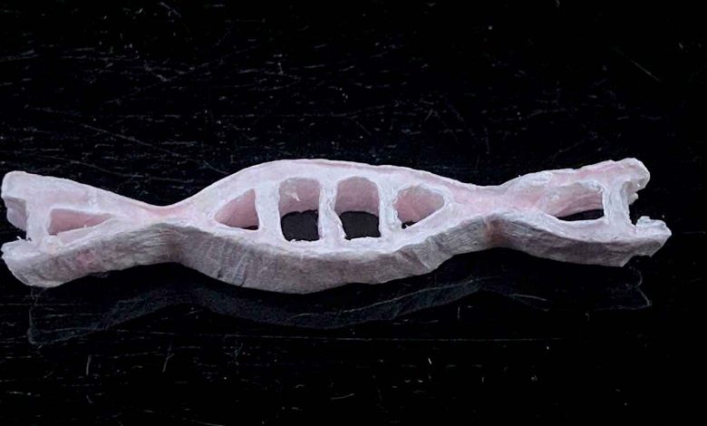 And the icing on the cake: its modeling requires little energy, as does its recycling. It is made by joining short strands of DNA to a chemical derived from vegetable oil, which produces a soft, gel-like material. The gel can be molded into molds and then solidified by a freeze-drying process that sucks the water out of the gel at a low temperature.