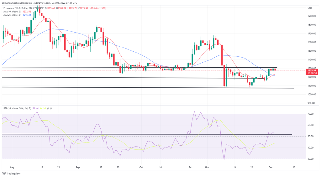 Ethereum was also in the red on Saturday as the price of the world’s second-largest cryptocurrency fell below a key resistance point. After hitting a high of $1299.84 on Friday, Ethereum dropped to a low of $1275.09 earlier in today’s session.