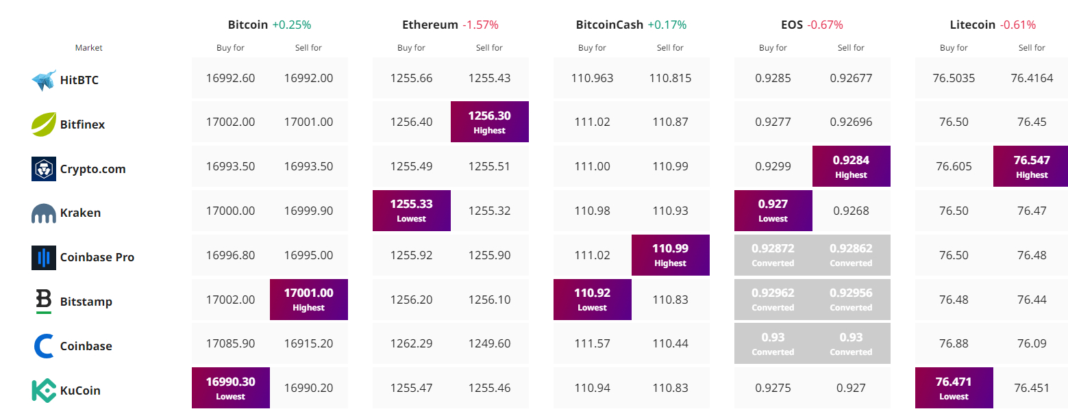 Find the best price to buy/sell cryptocurrency