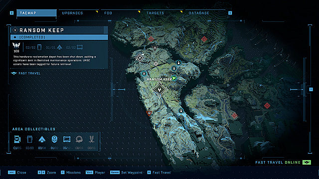 There are five Ransom Keep collectibles in Halo Infinite. Ransom Keep is not part of a campaign mission, but rather a point of interest on the Zeta Halo open world map. You will discover its location during the initial part of the Tower mission, where you capture your first forward operating base. It is located southwest of FOB Golf on the map.