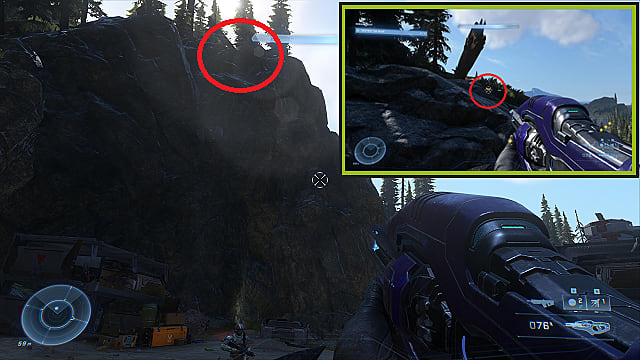 Use the grappling hook to scale the climb above the Spartan Core. At the top, hold on through the valley to the cliff on the other side. Jump through a small space to find the UNSC Audio Log collectible hidden on a cliff among broken logs. It is close to a BR75 and other weapons.