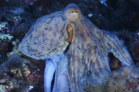 Common octopus (Octopus vulgaris) photographed in the Mediterranean. © Jean Cassou / Biosphoto / AFP
