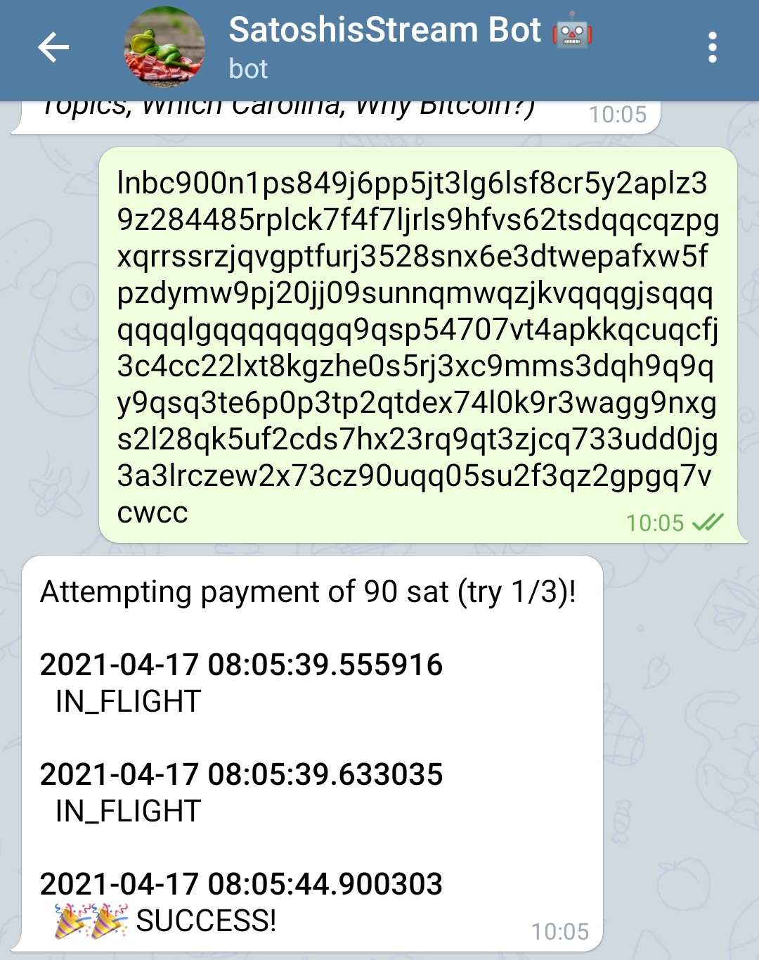 To collect donations, they will need to be requested via the @satoshisstreambot telegram robot.