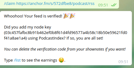 For the lucky ones with lightning fast messaging Sphynx Cat, just create a group dedicated to your podcast with the main benefit of not having to PodcasterWallet since the monetization will go directly to the node of the owner of the Sphinx group. In addition, the Sphinx messaging system will allow your listeners comment on your episodes through the lightning network.